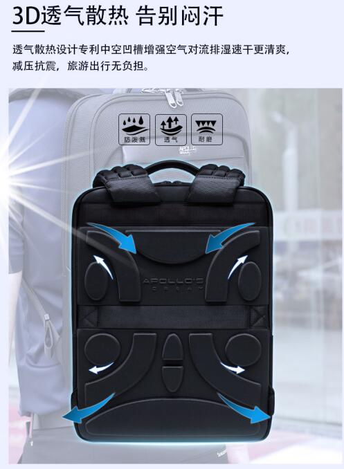 3D立體透氣散熱背幅設計,減震抗壓,透氣散熱功能性好,背負輕松舒適。